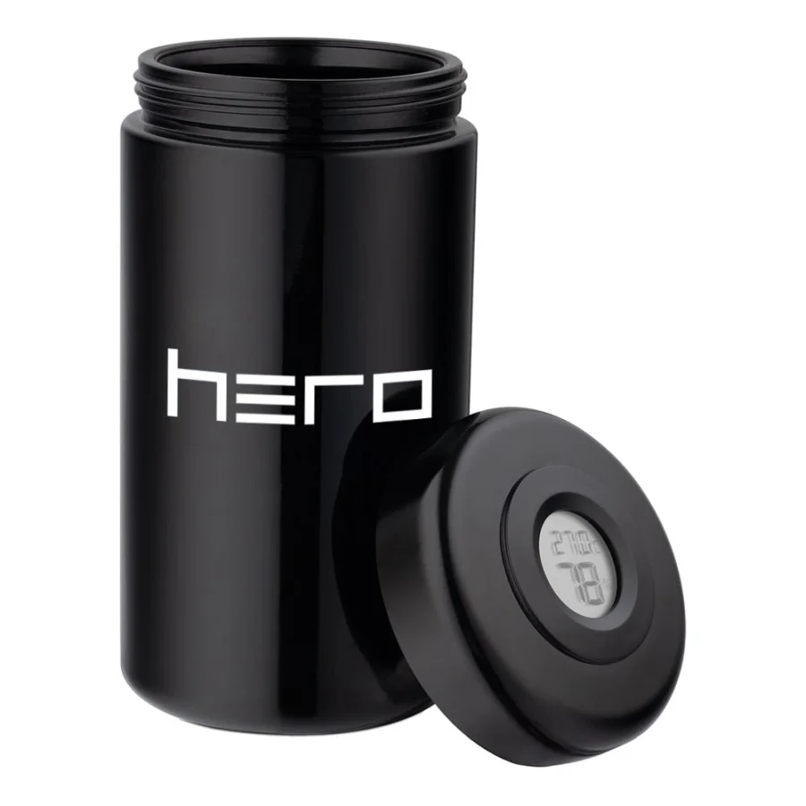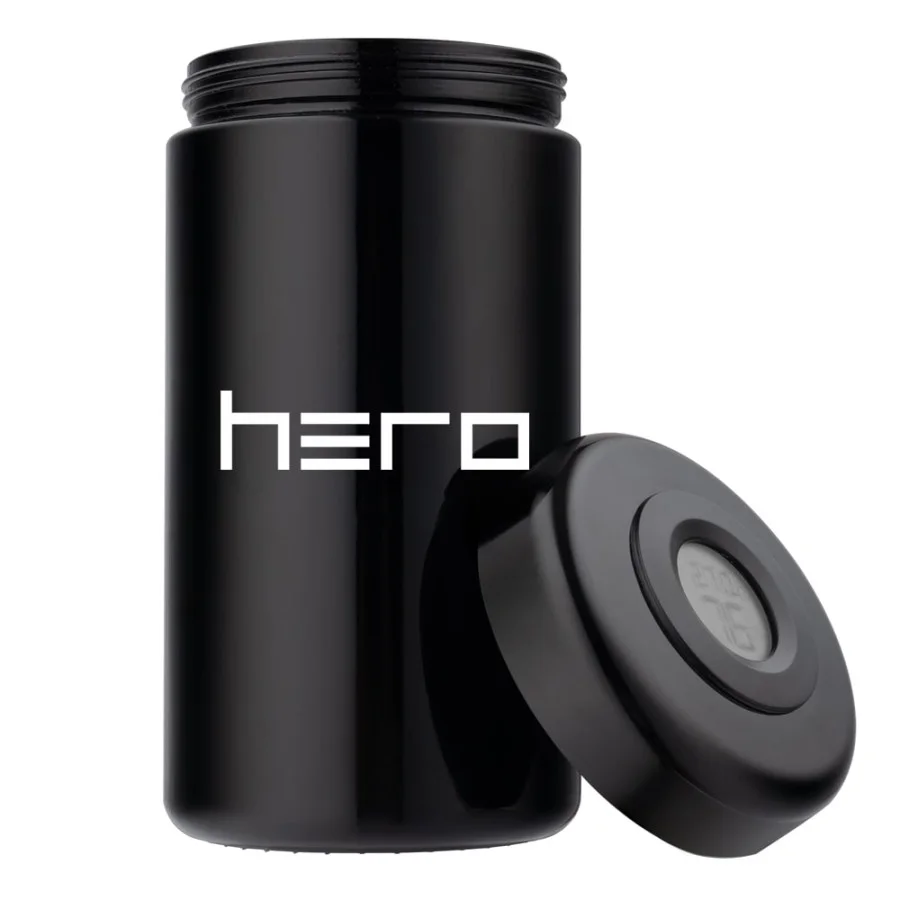 HERO - Twój najlepszy sposób na przechowywania ziół   Najważniejsze cechy pojemnika bezzapachowego HERO: Materiał - szkło biofotoniczne Elektroniczny wskaźnik wilgotności i temperatury Objętość - 500 ml Wymiary: 8 cm x 16cm Pojemność - około 30 gram suszu, ziół Regulator wilgotności w zestawie Zapasowa bateria w zestawie   Aby włączyć higrometr trzeba przytrzymać przycisk on/off Bezzapachowy pojemnik HERO z higrometrem to niezbędne wyposażenie dla zarówno dla pasjonatów konopi jak i wszelkich innych ziół. Dzięki zaawansowanej konstrukcji, która chroni zioła przed wpływem powietrza, nasz pojemnik utrzymuje świeżość i aromat Twojego ulubionego suszu przez długi czas. Niezależnie od tego, czy używasz suszu konopnego w celach medycznych czy rekreacyjnych, nasz produkt zapewnia najwyższą jakość, chroniąc cenne składniki Twoich roślin. Najnowszy dodatek marki HERO to efekt nieustannych wysiłków w doskonaleniu przechowywania suszu konopnego. Innowacyjny design nie tylko minimalizuje ryzyko przesuszenia lub nadmiernego nawilżenia, lecz także zapewnia optymalne warunki dla długotrwałego przechowywania. Dzięki pojemnikowi HERO, możesz być pewien, że Twoje zioła są pod najlepszą opieką.   WBUDOWANY HIGROMETR Zintegrowany higrometr wbudowany w pojemniku HERO to nie tylko dodatkowa funkcja - to kluczowy element zapewniający doskonałe warunki przechowywania Twoich ziół. Dzięki wbudowanemu higrometrowi możesz śledzić wilgotność wewnątrz pojemnika w czasie rzeczywistym, co daje Ci pełną kontrolę nad środowiskiem przechowywania swoich ulubionych ziół. Przechowywanie ziół w odpowiedniej wilgotności jest kluczowe dla zachowania ich jakości i skuteczności. Wbudowany higrometr HERO umożliwia bieżące monitorowanie wilgotności, co pozwala uniknąć ryzyka przesuszenia, które może prowadzić do utraty aromatu i właściwości, oraz nadmiernego nawilżenia, które może sprzyjać rozwojowi pleśni i zepsuciu zawartości.   ŚWIEŻOŚĆ, AROMAT I DYSKRECJA Specjalna konstrukcja pojemnika eliminuje niepożądane zapachy, co pozwala ziołom zachować ich autentyczny aromat przez długi czas. Bezzapachowy system w pojemnikach HERO to kompleksowe rozwiązanie, które skutecznie blokuje przenikanie niechcianych aromatów do wnętrza pojemnika. Dzięki temu możesz być pewien, że Twoje zioła zachowają swój pierwotny aromat. Dzięki bezzapachowemu pojemnikowi HERO, możesz cieszyć się długotrwałą świeżością swojego suszu konopnego czy innych ziół, bez obaw o utratę aromatu lub jakości. Pojemnik HERO nie tylko chroni zawartość przed niepożądanymi zapachami, ale także zapewnia optymalne warunki przechowywania, które utrzymują zioła świeże i aromatyczne przez długi czas.  Pojemnik bezzapachowy HERO to również idealne rozwiązanie dla osób, którym zależy, aby zapach zawartości pojemnika nie wydostawał się na zewnątrz. Dzięki temu, ze pojemnik jest szczelny możesz zachować dyskrecję i nie obawiać się o zapach wydostający się na zewnątrz.   BIOFOTONICZNE FIOLETOWE SZKŁO Specjalne biofotoniczne fioletowe szkło, używane w bezzapachowym pojemniku z higrometrem HERO, stanowi niezawodną ochronę dla Twoich ziół. Dzięki unikalnej zdolności filtracyjnej, biofotoniczne fioletowe szkło zapewnia kompleksową ochronę przed szkodliwym promieniowaniem UV, które może prowadzić do degradacji składników aktywnych. To oznacza, że Twoje zioła są bezpieczne i zachowują swoją pierwotną moc przez długi czas. Promieniowanie UV może prowadzić do utraty aromatu, smaku i skuteczności Twoich ziół. Dzięki zastosowaniu biofotonicznego szkła w pojemniku HERO, możesz być pewien, że Twoje zioła pozostaną świeże i skuteczne nawet po długim okresie przechowywania. REGULATOR WILGOTNOŚCI W ZESTAWIE Regulatory wilgotności działają one na zasadzie dwustronnej regulacji wilgotności, co oznacza, że mogą dodawać wilgoć do powietrza, gdy jest ona zbyt niska, oraz absorbować nadmiar wilgoci, gdy jest ona zbyt wysoka. Dzięki temu są w stanie utrzymać stabilny poziom wilgotności wewnątrz zamkniętego pojemnika, co jest kluczowe dla prawidłowego przechowywania wielu produktów, włączając susz konopny. POJEMNIKI HERO - DOSTĘPNE W RÓŻNYCH ROZMIARACH Pojemniki bezzapachowe HERO dostępne są w trzech rozmiarach: 100 ml, 250 ml oraz 500 ml. Dzięki temu możesz wybrać pojemnik idealnie dostosowany do swoich potrzeb.