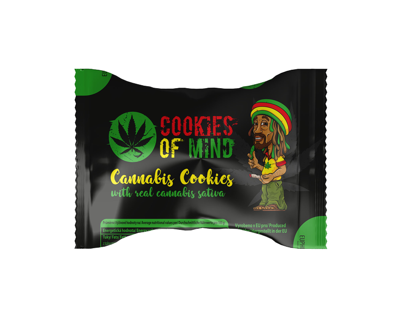 CIASTECZKA COOKIES OF MIND Z NASIONAMI KONOPI WŁÓKNISTYCH. Masa netto: 48 g Skład: Mąka pszenna, olej rzepakowy, cukier inwertorowany (cukier, środek spulchniający: wodorowęglan sodu), cukier, białko konopne w proszku 2%, nasiona konopi włóknistych 1%, barwnik(syrop cukru inertorowanego, koncentraty (cytrynowy, z krokosza barwerskiego), regulator kwasowości: kwas cytrynowy, barwnik: błękit brylanotwy, fcf), środek spulchniający: wodorowęglan amonu ze środkiem przeciwzbrylającym wodorowęglanem magnezu, aromat. Alergeny w składzie, zostały  wyszczególnione pogrubieniem. Może zawierać śladowe ilości mleka, jajek, łubinu, orzechów, soi i sezamu. Nie zawiera THC. Przechowywać w suchym i ciemnym miejscu.    CHCEMY POZWOLIĆ LUDZIOM ZASMAKOWAĆ WOLNOŚCI! Produkty EUPHORIA z konopi są najlepiej sprzedającymi się produktami na wysoce konkurencyjnych rynkach w Czechach i Holandii. Produkty eksportowane do ponad 10 krajów UE takich jak: Holandia, Niemcy, Włochy, Hiszpania, Belgia, Polska itp.  Pod Marką EUPHORIA stworzono wiele udanych produktów w branży spożywczej. Specjalizujemy się w niezwykłych produktach spożywczych z konopi. Oszałamiające wzornictwo, konkurencyjne ceny, najwyższa jakość i szalone pomysły, dzięki ciężkiej pracy sprawiły zadowolenie u wielu klientów w europie.