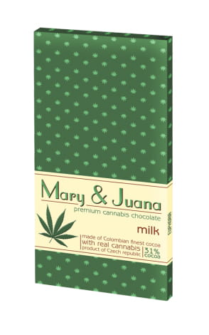 CZEKOLADA MLECZNA MARY & JUANA Z ŁUSKANYM ZIARNEM KONOPI 80 G Masa netto: 80 g Czekolada mleczna z dodatkiem siemienia konopnego. Skład: cukier, tłuszcz kakaowy, mleko w proszku pełne, miazga kakaowa, nasiona konopi łuskane (10%), emulgatory (lecytyna sojowa, polirycynooleinianpoliglicerolu), waniliowy ekstrakt BOURBON MADAGASCAR . Alergeny zostały wyróżnione w składzie tłustym drukiem. Może zawierać śladowe ilości orzechów. Zawartość masy kakaowej minimum 31% 100 g produktu zawiera średnio: Wartość energetyczna   2317 kJ/556 kcal Tłuszcze: 35 g w tym: tłuszcze nasycone: 19 g Cukier: 51 g Błonnik: 1,8 g Białk: 8 g Sól: 0,28 g Nie zawiera THC. Przechowywać w suchym i ciemnym miejscu.     CHCEMY POZWOLIĆ LUDZIOM ZASMAKOWAĆ WOLNOŚCI!  Produkty EUPHORIA z konopi są najlepiej sprzedającymi się produktami na wysoce konkurencyjnych rynkach w Czechach i Holandii. Produkty eksportowane do ponad 10 krajów UE takich jak: Holandia, Niemcy, Włochy, Hiszpania, Belgia, Polska itp.  Pod Marką EUPHORIA stworzono wiele udanych produktów w branży spożywczej. Specjalizujemy się w niezwykłych produktach spożywczych z konopi. Oszałamiające wzornictwo, konkurencyjne ceny, najwyższa jakość i szalone pomysły, dzięki ciężkiej pracy sprawiły zadowolenie u wielu klientów w europie.
