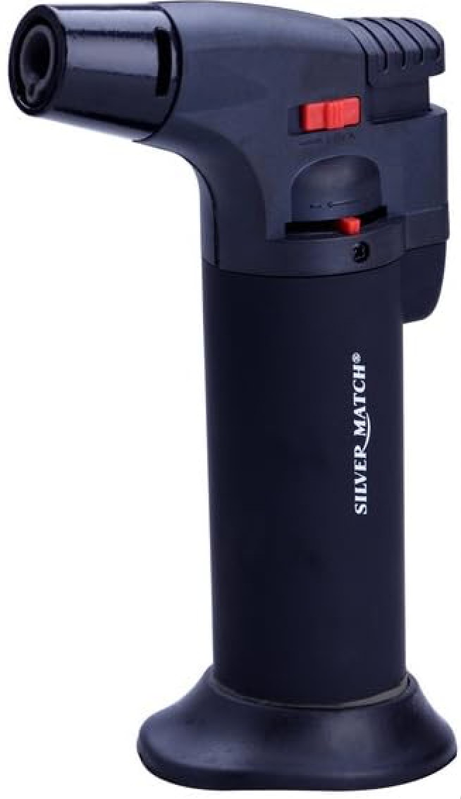 Palnik do Waporyzatora Bonga HYPER TORCH z regulowanym płomieniem   Palnik Hyper Torch Silvermatch. Zaopatrzony w niebieski płomień. Ma możliwość regulacji płomienia. Wygodny, dobrze leży w dłoni. Posiada stojącą podstawkę.   Idealny do bonga lub waporyzatorów DynaVap VapCap. Pełne naładowanie gazem dostarcza do 220 minut nieprzerwanej pracy.