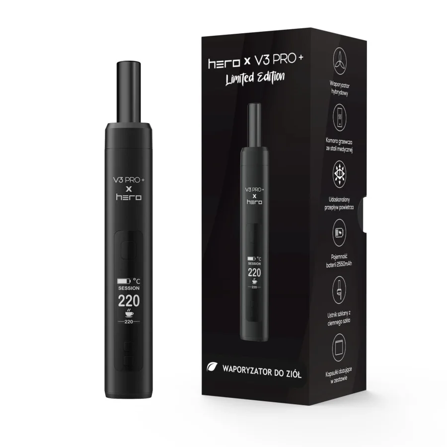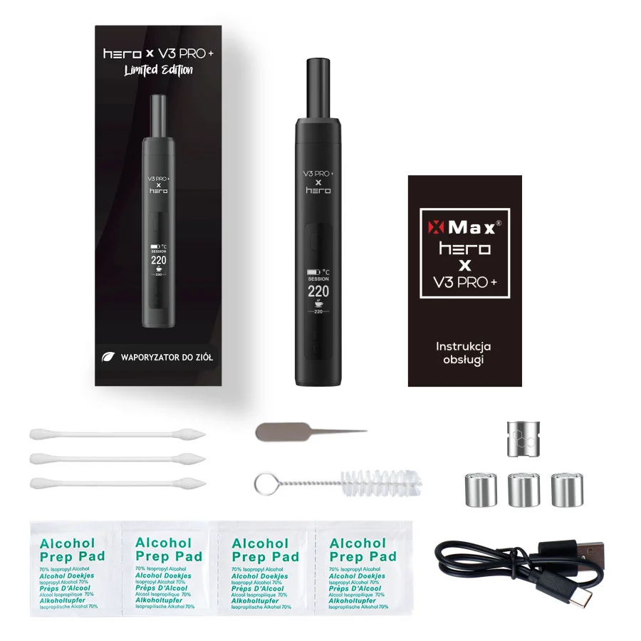 X-Max V3 PRO+ X HERO Limited Edition   X-Max V3 PRO+ X HERO Limited Edition to znacznie więcej niż zwykły waporyzator do ziół – to prawdziwa rewolucja w dziedzinie waporyzacji. Od etapu projektowania po końcowy efekt, ten model wyróżnia się na wielu płaszczyznach. Dzięki zaawansowanej technologii, innowacyjnemu designowi oraz nieustannemu dążeniu do perfekcji, X-Max V3 PRO+ X HERO Limited Edition jest powszechnie uznawany za czołowy waporyzator do ziół. Jego wyjątkowa jakość wykonania i doskonała wydajność zyskały uznanie i zaufanie użytkowników na całym świecie. Każdy element X-Max V3 PRO+ X HERO Limited Edition został starannie zaprojektowany, aby zapewnić użytkownikowi wyjątkowe doznania podczas inhalacji ziół. Od ergonomicznego kształtu po intuicyjne sterowanie, każdy detal został dopracowany, aby zapewnić maksymalną satysfakcję. Dzięki zaawansowanym funkcjom, takim jak precyzyjna kontrola temperatury, szybkie nagrzewanie, tryb ON DEMAND oraz łatwa wymiana komponentów, model ten pozwala na spersonalizowane doświadczenia waporyzacyjne dostosowane do indywidualnych potrzeb użytkownika. Niezależnie od tego, czy jesteś doświadczonym miłośnikiem waporyzacji, czy dopiero zaczynasz swoją przygodę, X-Max V3 PRO+ X HERO Limited Edition zawsze dostarcza niezawodną wydajność. Dzięki solidnej konstrukcji, wysokiej jakości materiałom i zaawansowanej technologii, ten waporyzator zapewnia nie tylko doskonałe rezultaty, ale również długotrwałą satysfakcję z użytkowania.   X-MAX V3 Pro Plus X HERO FUNKCJE Waporyzator X-Max V3 PRO+ X HERO Limited Edition wyróżnia się nie tylko eleganckim designem, ale także zaawansowanymi funkcjami, które pozwalają użytkownikowi dostosować doznania waporyzacyjne do swoich indywidualnych preferencji. Kluczową cechą tego modelu jest możliwość precyzyjnej kontroli temperatury, co umożliwia dostosowanie jej do różnych rodzajów ziół, zapewniając optymalne doznania smakowe i aromatyczne. Waporyzator X-Max V3 PRO+ X HERO Limited Edition oferuje również funkcję szybkiego nagrzewania ON DEMAND, co pozwala na błyskawiczne osiągnięcie pożądanej temperatury. To idealne rozwiązanie dla osób ceniących szybkość i wygodę, umożliwiając natychmiastowe rozpoczęcie sesji inhalacyjnej bez zbędnego oczekiwania.   X-MAX V3 Pro Plus X HERO FUNKCJE Ulepszony szklany czarny ustnik z magnesem W najnowszej wersji X-Max V3 PRO+ X HERO Limited Edition, inżynierowie skupili się na udoskonaleniu użytkowego doświadczenia poprzez wprowadzenie ulepszonego szklanego ustnika z magnesem.  Szklany ustnik, wykonany w głębokim odcieniu czerni, nie tylko nadaje waporyzatorowi X-Max V3 PRO+ X HERO Limited Edition elegancki wygląd, ale także stanowi estetyczne dopełnienie całościowego designu urządzenia. Jest to idealne połączenie stylu z funkcjonalnością. Zastosowanie magnetycznego zapięcia sprawia, że korzystanie z tego szklanego ustnika jest niezwykle proste i intuicyjne. Dzięki magnetycznemu mechanizmowi, ustnik można łatwo przymocować do urządzenia, zapewniając stabilność i pewność podczas waporyzacji.   Ulepszony przepływ powietrza w X-Max V3 PRO+ X HERO Limited Edition Dzięki zastosowaniu zaawansowanych technologii i precyzyjnej konstrukcji, X-Max V3 PRO+ X HERO Limited Edition zapewnia niezrównany, płynny przepływ powietrza. To sprawia, że każda inhalacja jest łatwa i przyjemna, bez żadnych oporów. Płynny przepływ powietrza również minimalizuje ryzyko przegrzewania się materiału w komorze grzewczej, co pozwala cieszyć się czystym smakiem i aromatem inhalowanych ziół. Ulepszony przepływ powietrza w X-Max V3 PRO+ X HERO Limited Edition przekłada się na jeszcze bardziej intensywne doznania podczas waporyzacji. Każdy wdech jest głębszy i bardziej satysfakcjonujący, a aromaty i smaki są wyraźniejsze i pełniejsze.   X-MAX V3 PRO Plus - ceramiczna ścieżka pary X-Max V3 Pro Plus x HERO wyróżnia się pełną ceramiczną ścieżką pary. Ta cecha zapewnia nieskazitelną czystość smaku podczas każdej sesji waporyzacyjnej, czyniąc go wyjątkowym w swojej klasie.   Komora grzewcza ze stali nierdzewnej medycznej klasy Bezpieczeństwo i trwałość to kluczowe cechy wysokiej jakości waporyzatora, dlatego komora grzewcza X-Max V3 PRO+ X HERO Limited Edition jest wykonana z najwyższej jakości stali nierdzewnej medycznej klasy. Ten wybór zapewnia użytkownikowi nie tylko bezpieczeństwo, ale także długotrwałą wydajność i niezawodność. Stal nierdzewna medycznej klasy spełnia najwyższe standardy bezpieczeństwa, jest odporna na korozję, co oznacza, że komora grzewcza nie degraduje się pod wpływem waporyzowanych substancji ani wysokiej temperatury. Dzięki temu użytkownik może mieć pewność, że proces waporyzacji jest bezpieczny dla zdrowia. Stal nierdzewna jest również znana ze swojej trwałości i odporności na uszkodzenia, co sprawia, że komora grzewcza jest wyjątkowo wytrzymała i odporna na zużycie. Ulepszenia w wersji X-MAX V3 Pro+ x HERO względem podstawowej wersji X-MAX V3 Pro - ulepszony, szklany ustnik w zestawie z czarnego szkła - ustnik zintegrowany z magnesem - poprawiony przepływ powietrza - w pełni ceramiczna ścieżka pary - komora grzewcza ze stali nierdzewnej medycznej klasy - 3 kapsułki dozujące w zestawie   Specyfikacja Rozmiar 2,7 x 15 x 2,4 cm Waga 140 g Rodzaj Przenośny Podgrzewanie Hybrydowe Przybliżona pojemność komory 0,2 g Zakres temperatury 100 do 220 °C Komora grzewcza Stal medyczna Bateria 2550 mAh Wymienna bateria Tak Kolor Czarny Producent X-MAX Zawartość zestawu: Waporyzator X-Max V3 PRO Plus x HERO Szklany ustnik - czarne szkło Szczoteczka Mieszadełko Nasączone chusteczki do czyszczenia x4 Kapsułka dozująca ze stali nierdzewnej klasy medycznej x3 Sitko x2 Patyczki do czyszczenia x3 Kabel ładowania USB-C Instrukcja obsługi w języku polskim i angielskim Pojemnik